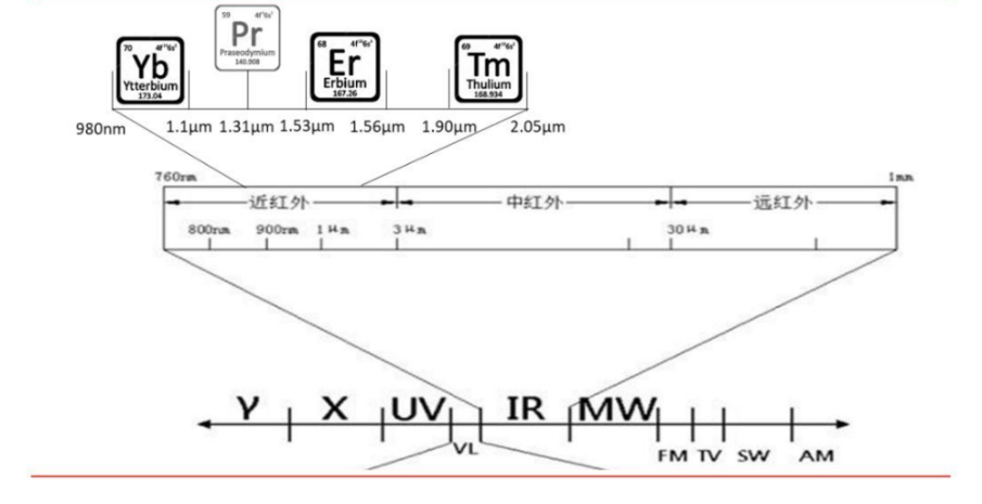 图2 镱、镨、铒、铥各稀土元素光纤元素辐射波段