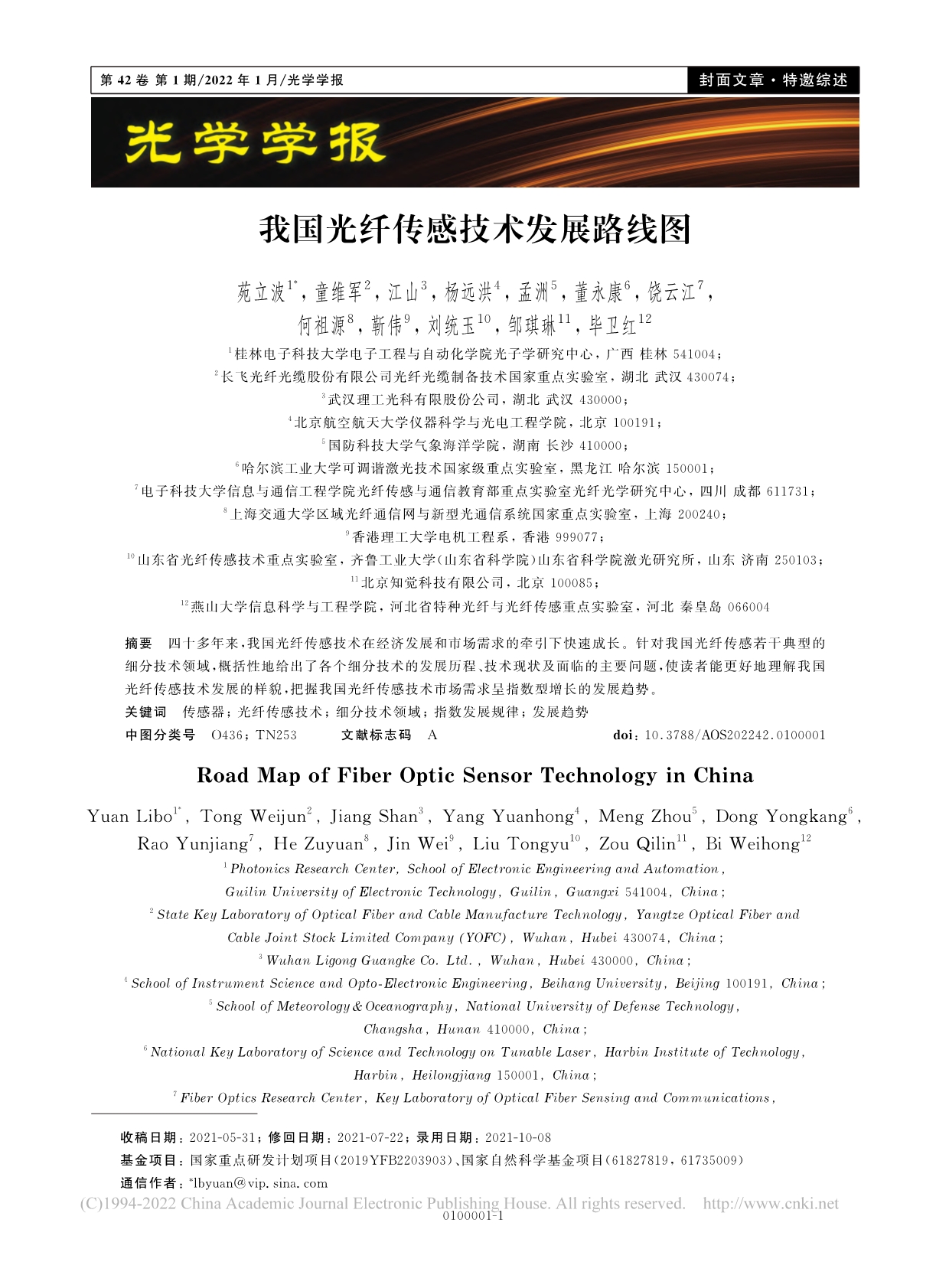我国光纤传感技术发展路线图